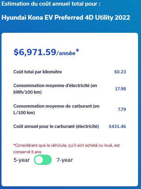 For example, let's take the case of the Kona 2022, one of the best-selling electric cars in Quebec. Its electric version costs 46,435 compared to $26,638 for the equivalent gasoline version. That's a difference of $19,797, which may seem like a lot at first! However, for the electric version, you are eligible for a government subsidy of $5,000 at the federal level and $7,000 at the provincial level. There is therefore a difference of $9360 when you purchase the vehicle.