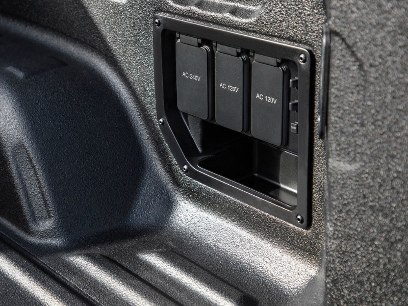 Mieux, une capacité de 10,2 kW pour l’usage d’outils et d’appareils est intégrée au véhicule et des prises sont présentes un peu partout, y compris à la caisse. En tout, on pourra brancher 10 appareils.